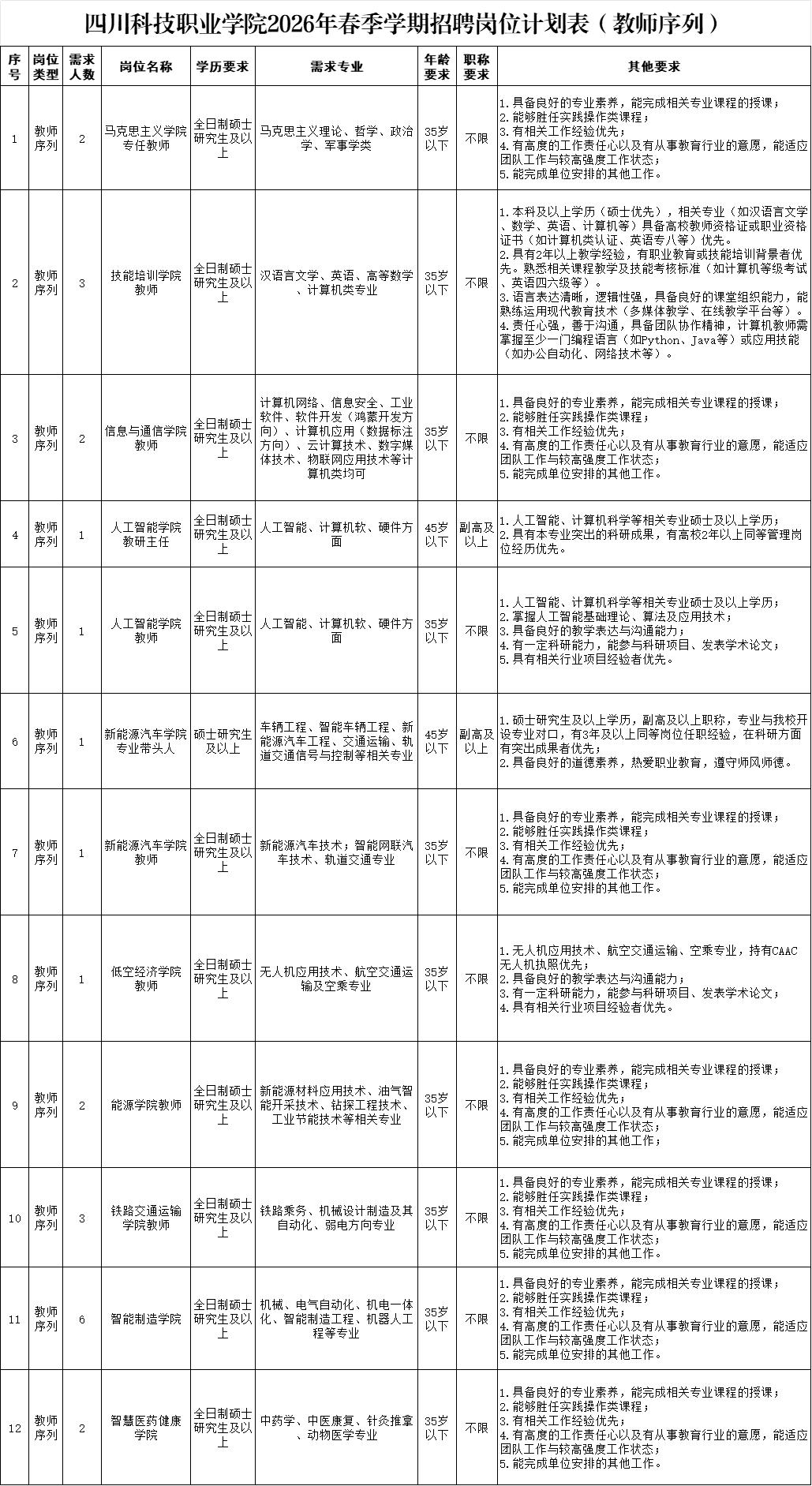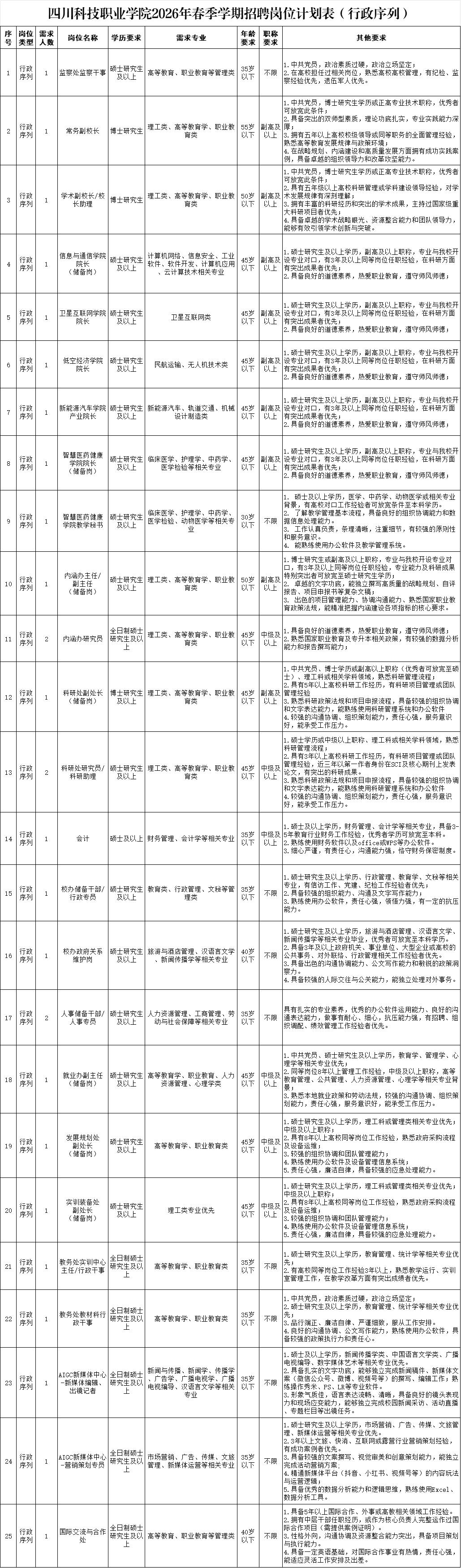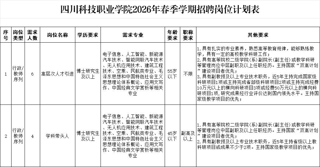 > 校级/院级管理岗位、高层次人才/学科带头人、职能部门岗位请投递:ckhr2025@163.com,联系人:陈老师 028-35035927;